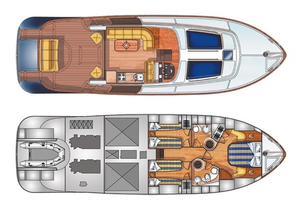 Originally designed by his designer as a day boat, this Emozione 55, the first of what will become the 55 Fly, has been completely rethought by his first owner for long cruises all around the Mediterranean.