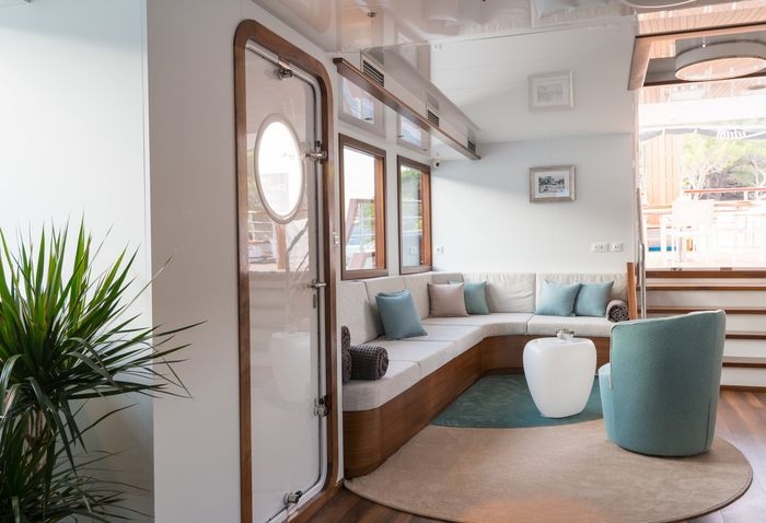 Commercially registered under the Croatian flag and built to MCA LY3 compliance, the yacht is monitored by the Croatian Maritime Registry for coastal navigation. She boasts an impressive gross tonnage of 339 GT, with a thoughtfully laid-out interior. The main salon includes a dining area for 12 guests, two separate lounge spaces, and a fully equipped bar.