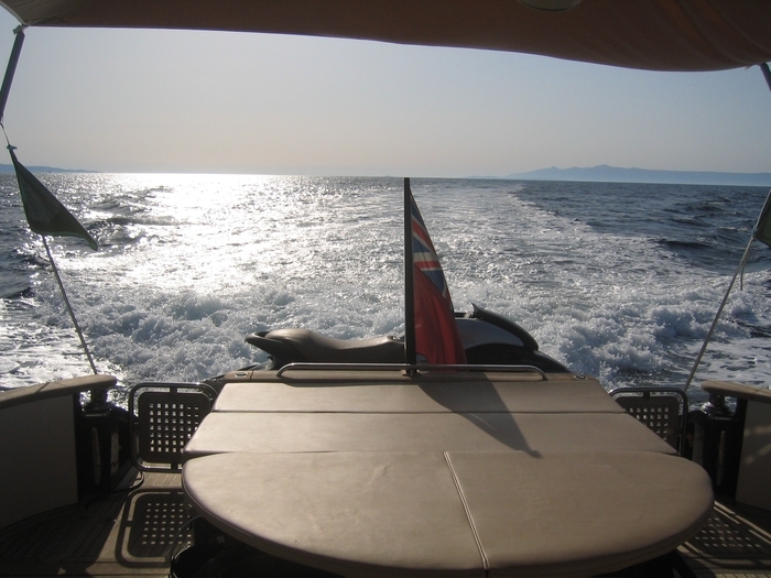 And when time is running out or the weather gets bad, or simply by the pleasure of the wind in the hair, a thrust on the throttle propels the boat at a cruising speed of 17 to 20 knots, with still a lot of power reserved.
