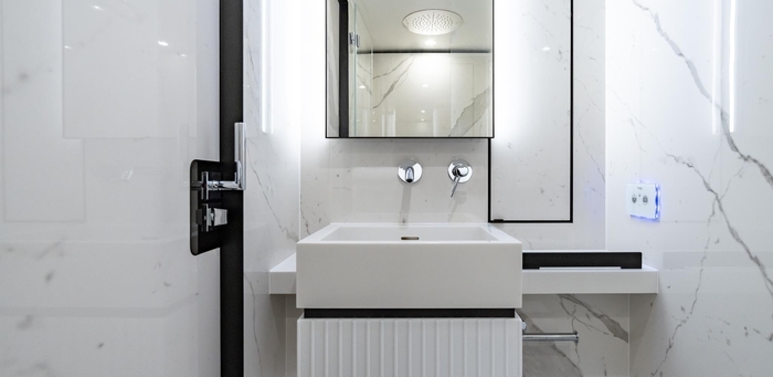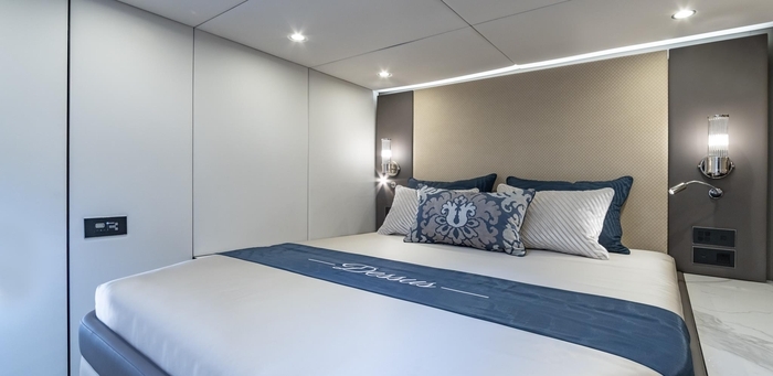DESSUS has the galley up in the salon to make for a wonderful and involving experience for the guests which enables 4 sumptuous en-suite cabins below decks and an additional crew cabin.